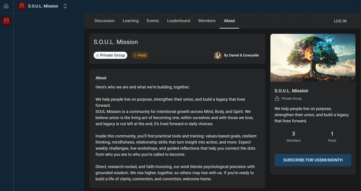 The SOUL Mission Community exists to restore something most modern systems have lost: a trusted township—a place where people grow together over time, guided by shared values, structure, and responsibility.